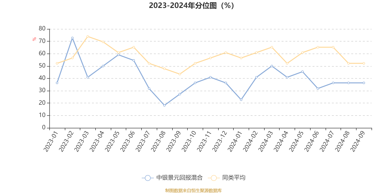 通过所选区间该基金净值增长率分位图,可以观察该基金与同类基金业绩比较情况。图为坐标原点到区间内某时点的净值增长率在同类基金中的分位数。